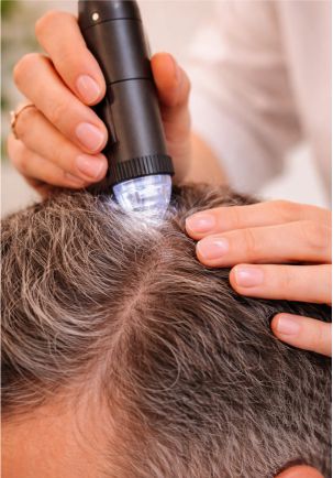 Diagnóstico con microcámara, valorando la microbiota, hidratación, sensibilidad y estado del folículo.